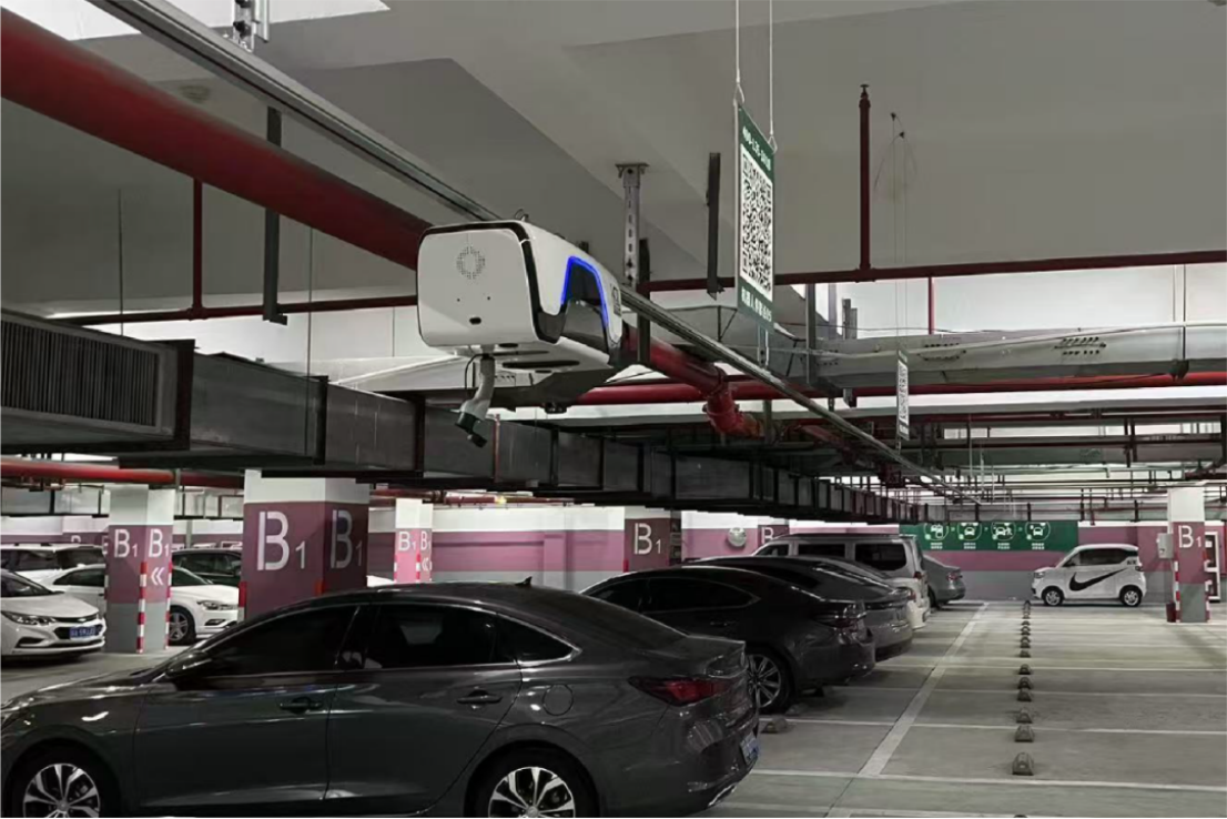 轨道悬空部署:顶部架设轨道可释放100%地面空间,单机系统可按需覆盖12-30车位;