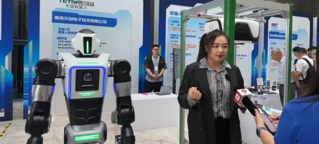 2025年6月11日,南京智能机器人发展大会在江宁会展中心召开。我司携“天机充”移动充电机器人与全球首款防爆人形机器人“天魁1号”联袂亮相展会。
